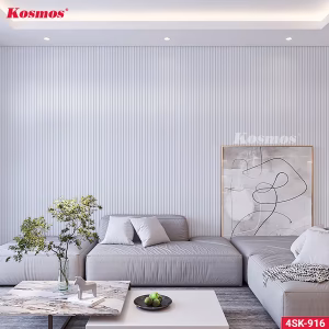 - Họa tiết trắng vân giấy hiện đại: Điểm nhấn làm nên sự khác biệt của tấm ốp Tường Việt 4SK-916 chính là mẫu mã vân giấy trắng. Không chỉ là màu trắng đơn thuần, họa tiết vân giấy được tái tạo một cách chân thực và tinh xảo trên lớp trang trí, mang lại cảm giác nhẹ nhàng, mềm mại như chất liệu giấy thủ công, nhưng lại sở hữu độ cứng cáp và khả năng bảo vệ của vật liệu SPC. Sắc trắng này dễ dàng hòa hợp với mọi phong cách thiết kế, từ tối giản hiện đại đến sang trọng cổ điển, làm bừng sáng và tạo cảm giác mở rộng cho không gian.