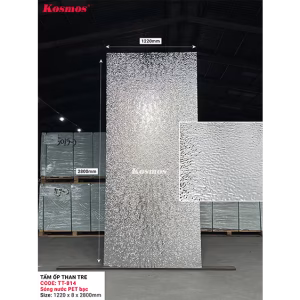 Với họa tiết vân sóng nước mềm mại cùng lớp phủ PET bạc sang trọng, tấm ốp mang đến vẻ đẹp ấn tượng cho mọi không gian nội thất.