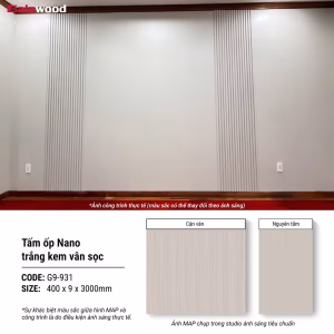 Tấm ốp Nano G9-931 là dòng tấm ốp trang trí nội thất thuộc thương hiệu Galawood sở hữu tông màu trắng kem nhẹ nhàng, một gam màu trung tính không bao giờ lỗi mốt, mang lại cảm giác ấm áp và trang nhã. Điểm nhấn đặc biệt của tấm ốp còn nằm ở họa tiết vân sọc dọc tinh xảo, tạo ra một hiệu ứng thị giác độc đáo, giúp không gian có cảm giác cao và thoáng đãng hơn.
