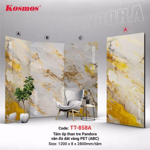 Có thể kết hợp tấm ốp Pandora vân đá dát vàng TT-858 với các mẫu than tre nào?