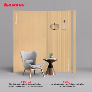 Bộ đồng màu tấm ốp than tre Tường Việt vân gỗ vàng (6S801 & TT-801CX) vừa đảm bảo yếu tố thẩm mỹ, vừa được chứng nhận bằng những tiêu chí kỹ thuật rõ ràng như tốc độ cháy lan chậm 103W/s, formaldehyde E0, độ đồng đều bề mặt và khả năng chống bám bẩn.