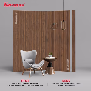 Tấm ốp và lam sóng than tre vân gỗ nâu walnut 6S825 & TT-825