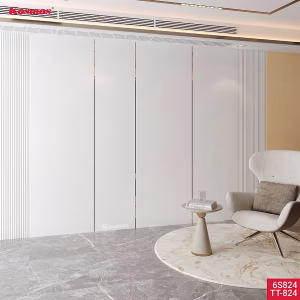 - Phối hợp phẳng – sóng: T-824 tạo nền phẳng, gọn gàng, dễ vệ sinh; 6S824 tăng hiệu ứng 3D, tránh nhàm chán. Khi kết hợp, không gian vừa đơn giản vừa sinh động.
