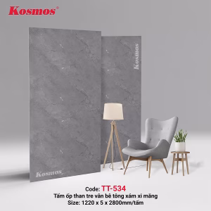 Tấm ốp than tre vân bê tông mã TT-534 có màu xám bắt mắt, kích thước lớn 1220 x 2800mm, độ dày 5mm, diện tích 3.416m²/tấm. Với trọng lượng nhẹ khoảng 15kg/tấm, sản phẩm rất dễ vận chuyển và thi công. Dưới đây là bảng tổng hợp các tiêu chuẩn kỹ thuật nổi bật của sản phẩm: