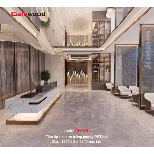 Bạn đang tìm kiếm một giải pháp ốp tường, ốp trần vừa sang trọng, hiện đại lại vừa bền bỉ, dễ thi công? Tấm ốp sợi than tre tráng gương bạc Galawood G-896 chính là câu trả lời hoàn hảo. Với công nghệ sản xuất tiên tiến, G-896 mang đến vẻ đẹp lấp lánh như gương thật nhưng lại khắc phục được nhược điểm dễ vỡ.