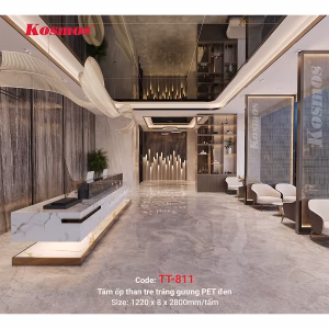 Đặc tính “đẹp như gương nhưng không lo nứt vỡ” là điểm mạnh nổi bật của TT-811. Khác với gương thông thường, tấm ốp này thể hiện khả năng chịu lực vượt trội nhờ cấu tạo đặc biệt từ than tre. Quá trình thi công nhanh chóng, khả năng bo góc linh hoạt và chi phí tối ưu so với gương truyền thống là những ưu điểm đáng chú ý. Độ bền lâu dài của sản phẩm được đảm bảo thông qua cấu trúc đa lớp và công nghệ sản xuất tiên tiến.