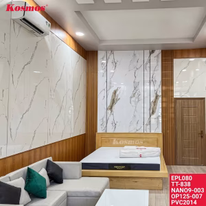 - Kết hợp với vân vải: Kết hợp tấm ốp TT-838 với mẫu than tre có họa tiết vân vải sẽ mang đến sự mềm mại và tinh tế cho không gian. Sự kết hợp này thích hợp cho phòng ngủ hoặc phòng khách, tạo cảm giác thư giãn và dễ chịu.