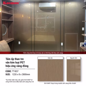 5. Ứng dụng tấm ốp than tre Tường Việt vân kim loại PET hiệu ứng xước vàng đồng TT-837