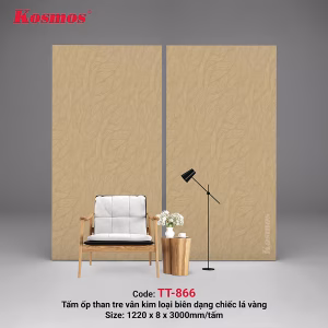 Cấu tạo tấm ốp sợi than tre giả kim loại biên dạng chiếc lá màu vàng TT-866