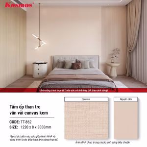 Ưu điểm vượt trội của tấm ốp than tre vân vải canvas màu kem TT-862