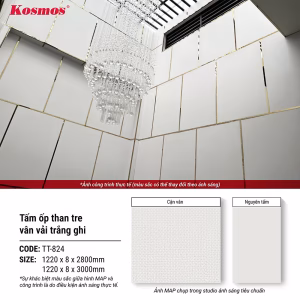 Tấm ốp than tre vân vải TT-824 trắng ghi là sản phẩm trang trí nội thất được làm từ bột than tre. Sản phẩm dễ dàng phối hợp với nhiều phong cách thiết kế, từ cổ điển đến hiện đại, tạo ra không gian sống đẹp mắt và tinh tế.